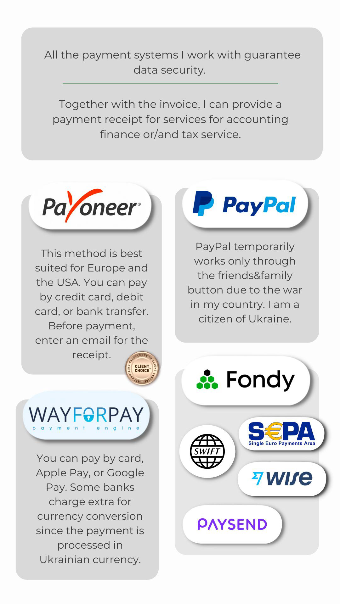 These are the payment systems that I work with →